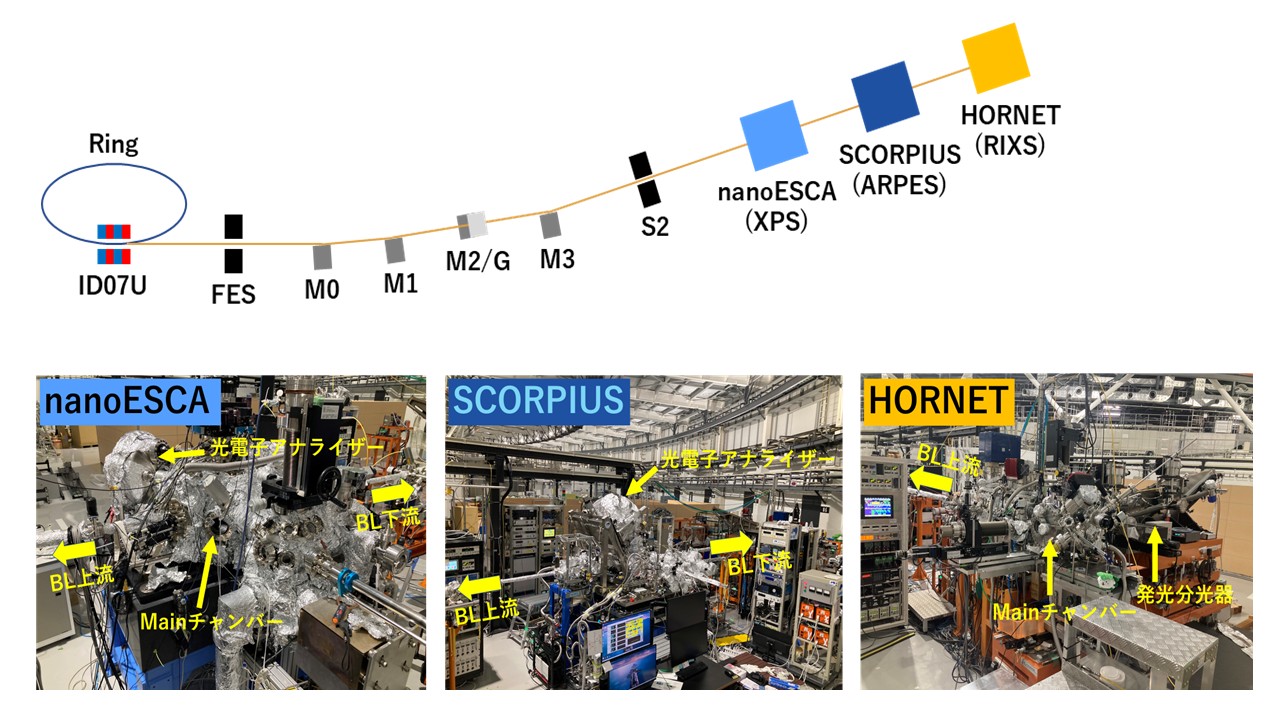 実験装置として、ナノX線光電子分光装置(NanoESCA)、軟X線マルチモーダルオペランド顕微分光装置(SCORPIUS) 、共鳴非弾性X線散乱装置(HORNET)がタンデムに配置されています。 固体、液体、気体の電子状態・化学状態を解析します。