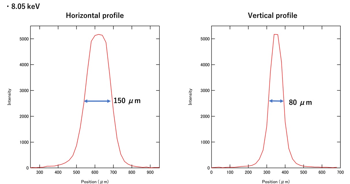 8.05 keV:水平 約150 µm, 垂直 約80 µm