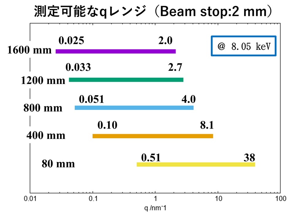 BL08WでのSAXS測定では、 8.05 keVおよび 13.1 keVの2つのX線エネルギーをご利⽤いただけます。