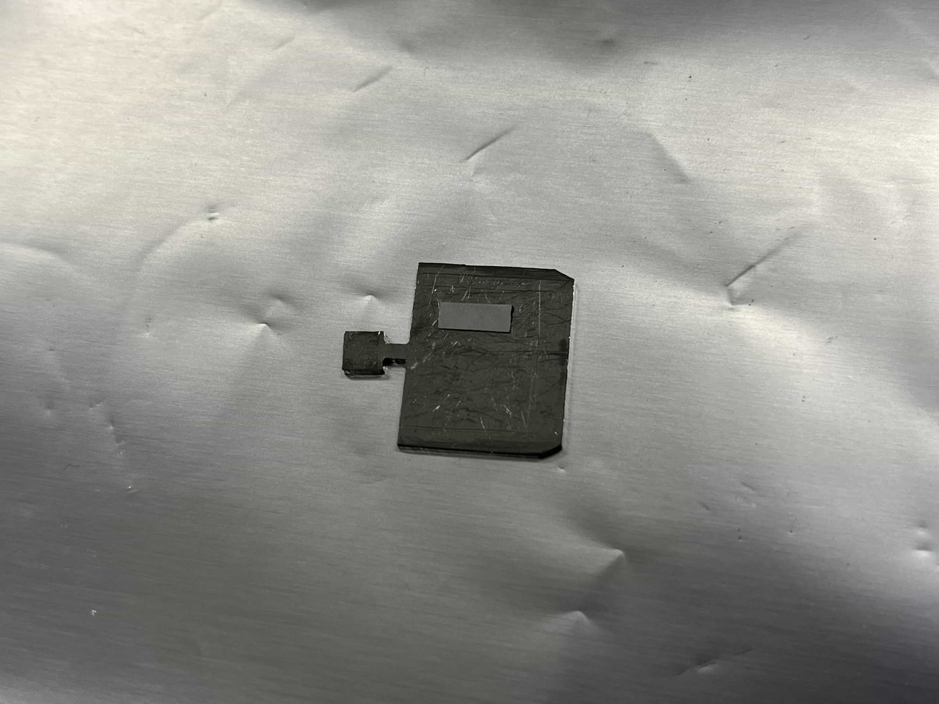 ①カーボンテープを切り出し、サンプルプレートに貼付け