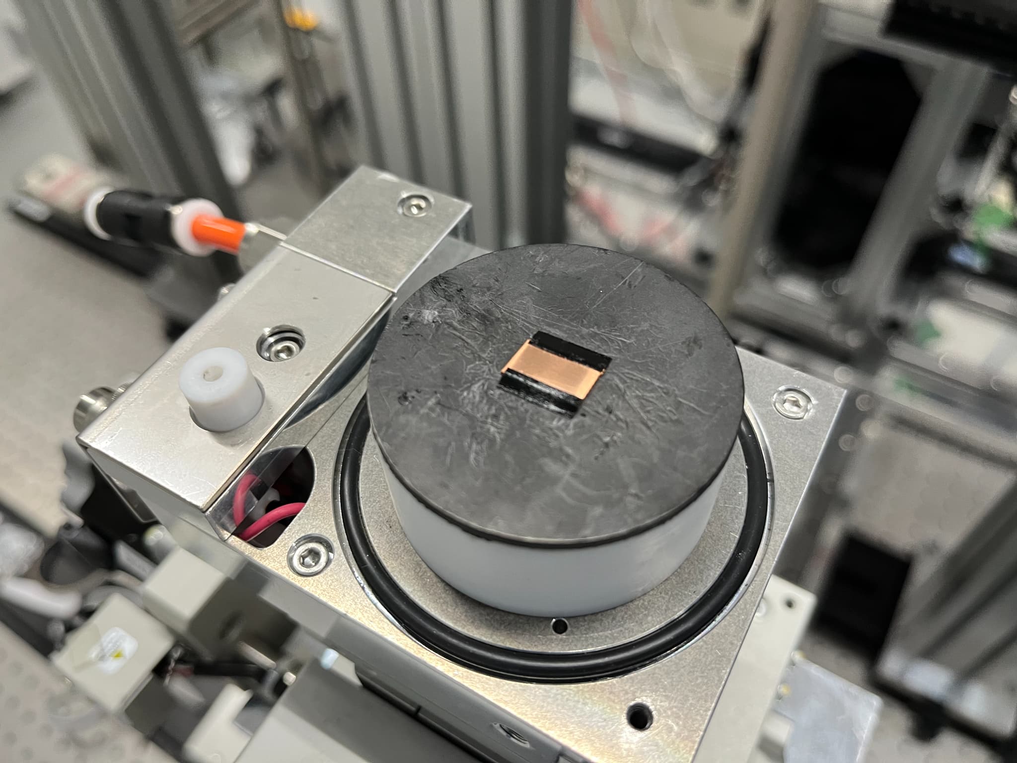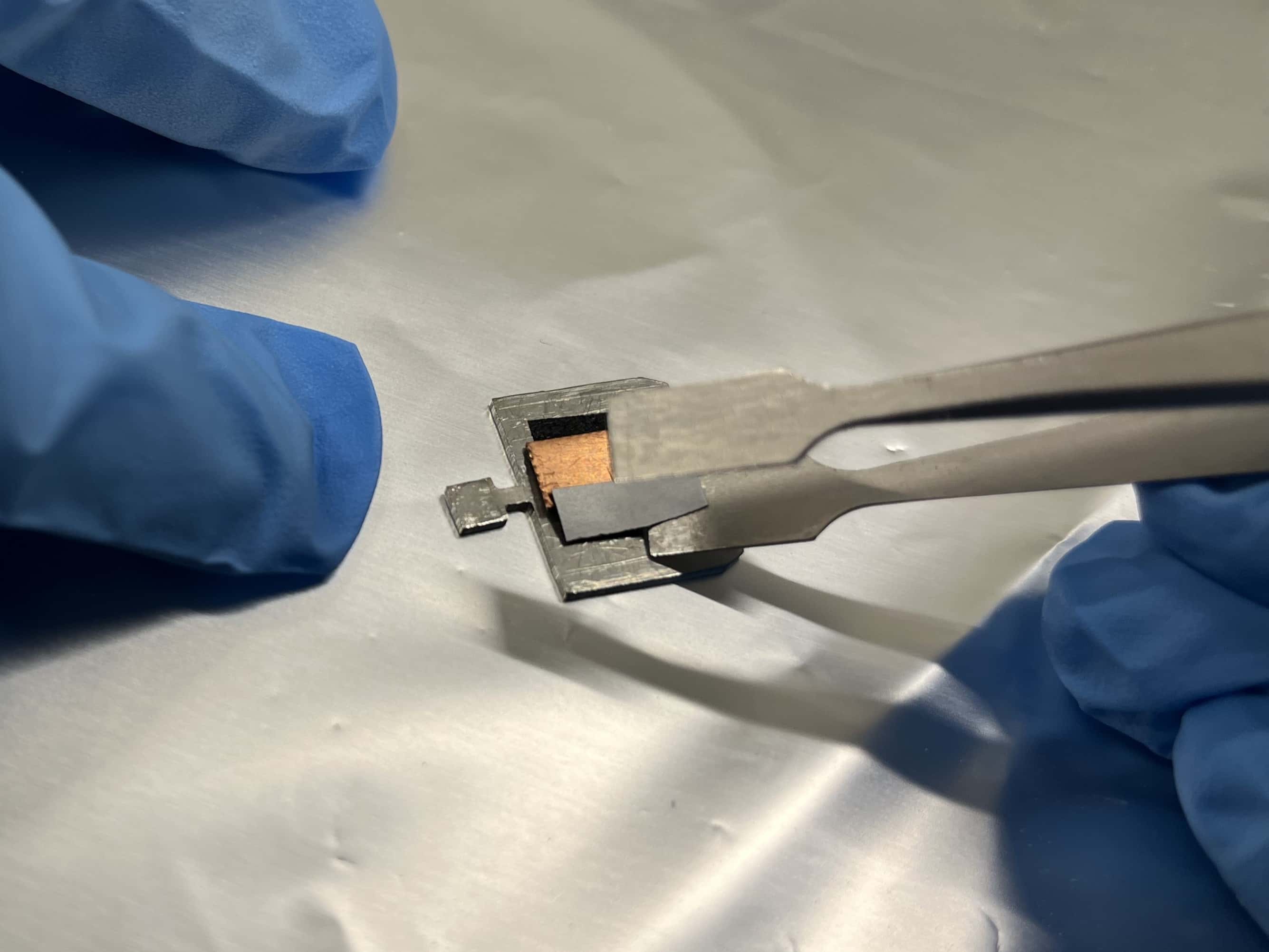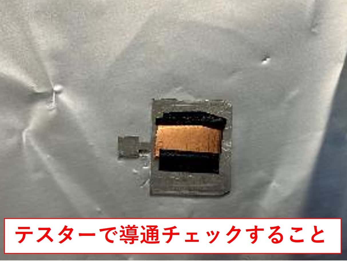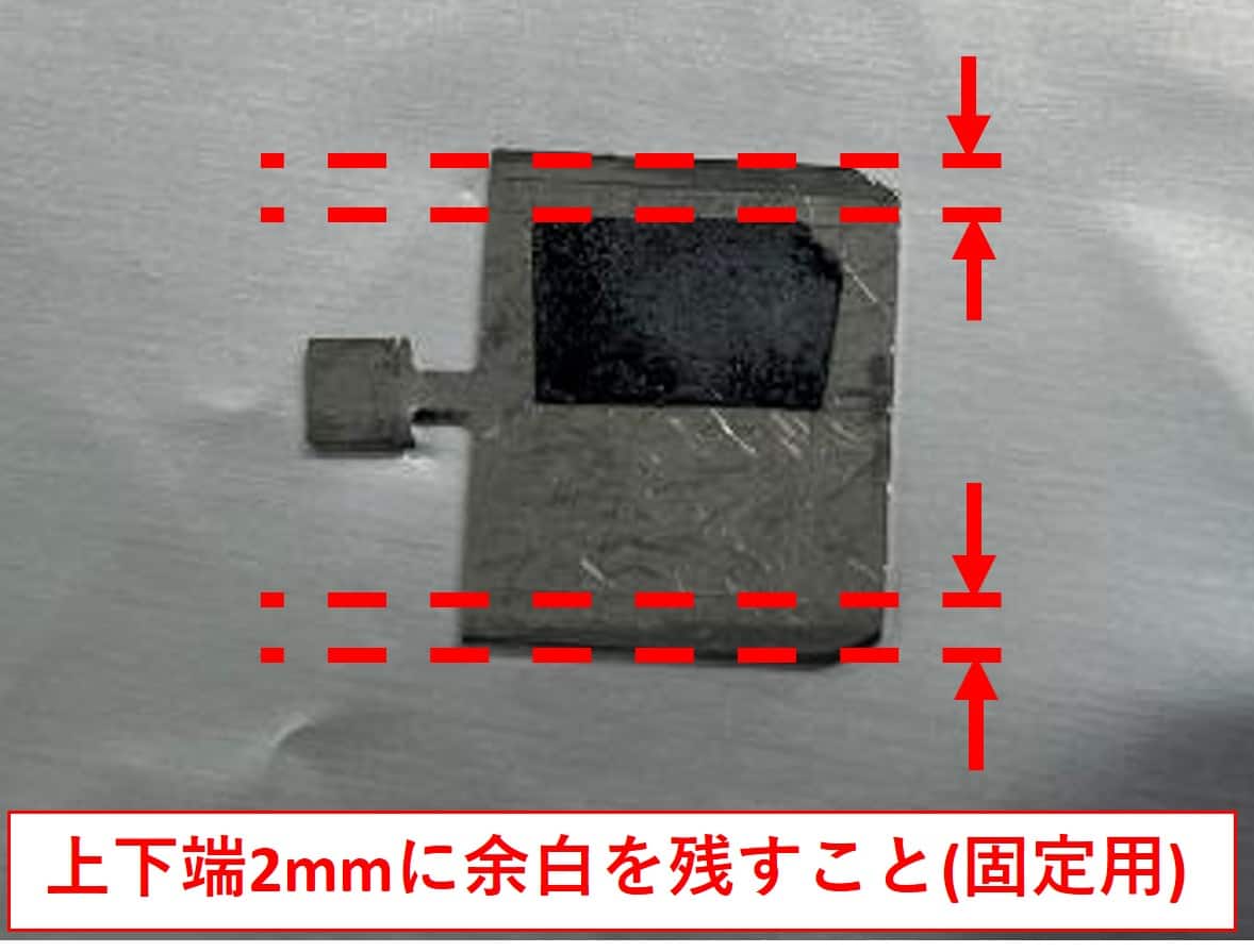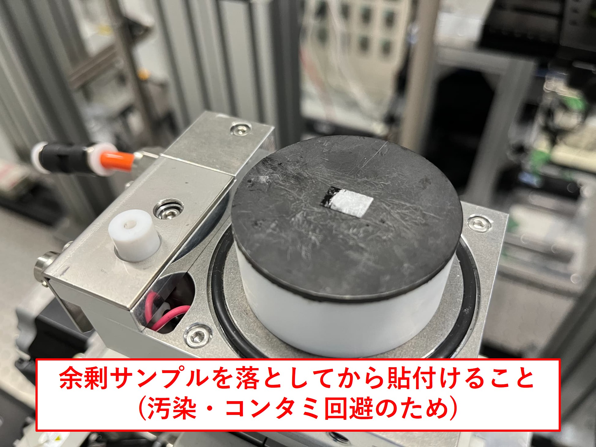 ③サンプルの上面からプレートへカーボンテープを貼付け