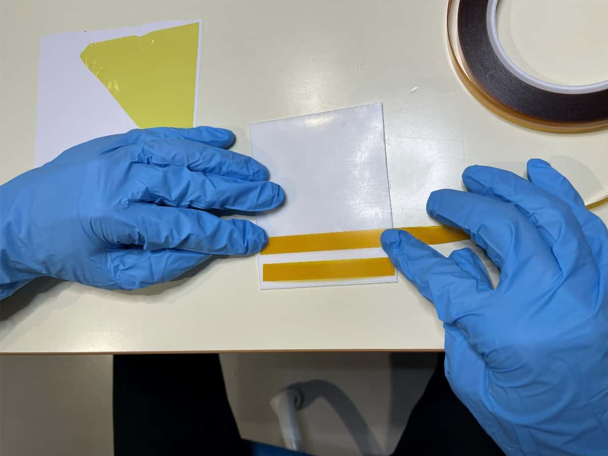 ④カプトン両面テープをつけたテフロンフィルムを切り出す