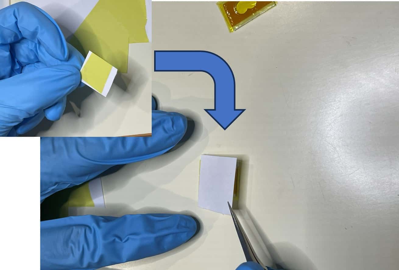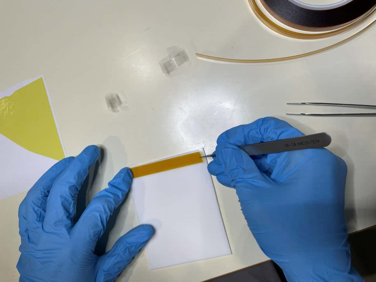 ⑪溶液注入後のセルにカプトンフィルムをかぶせる