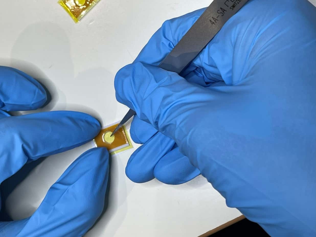 ⑧カプトンフィルムに貼り、溶液を入れる前のセルが完成