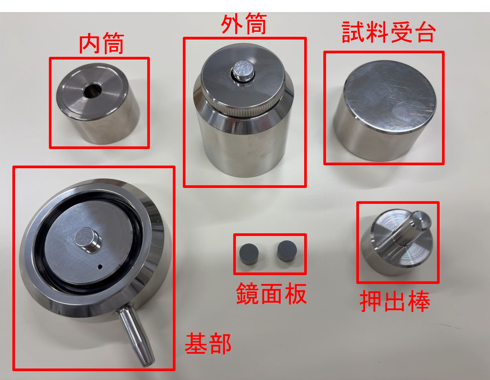 ③試料受台を外す。鏡面板に挟まれた状態のペレットが出てくる