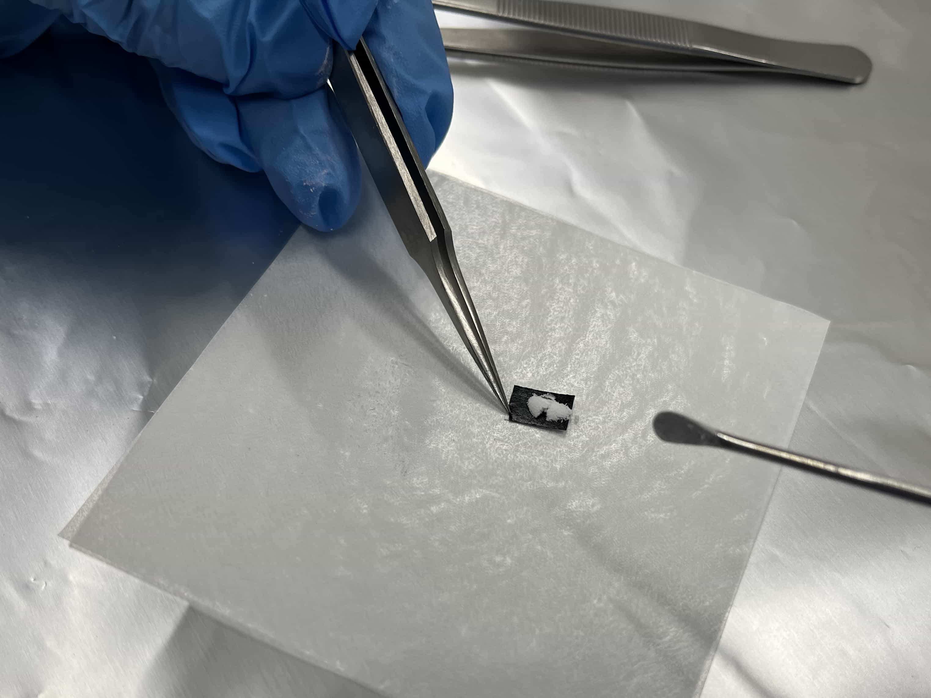③カーボンテープに軽く押し当て、サンプルを転写する