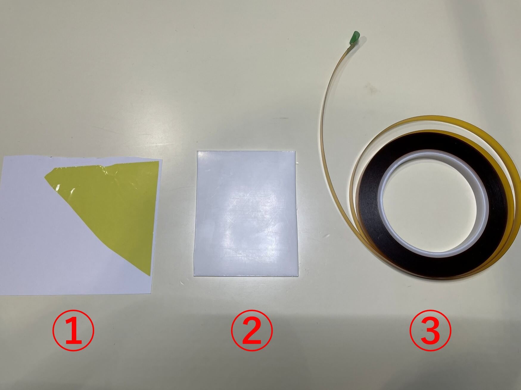 ②カプトン両面テープの片側の 透明フィルムをはがす