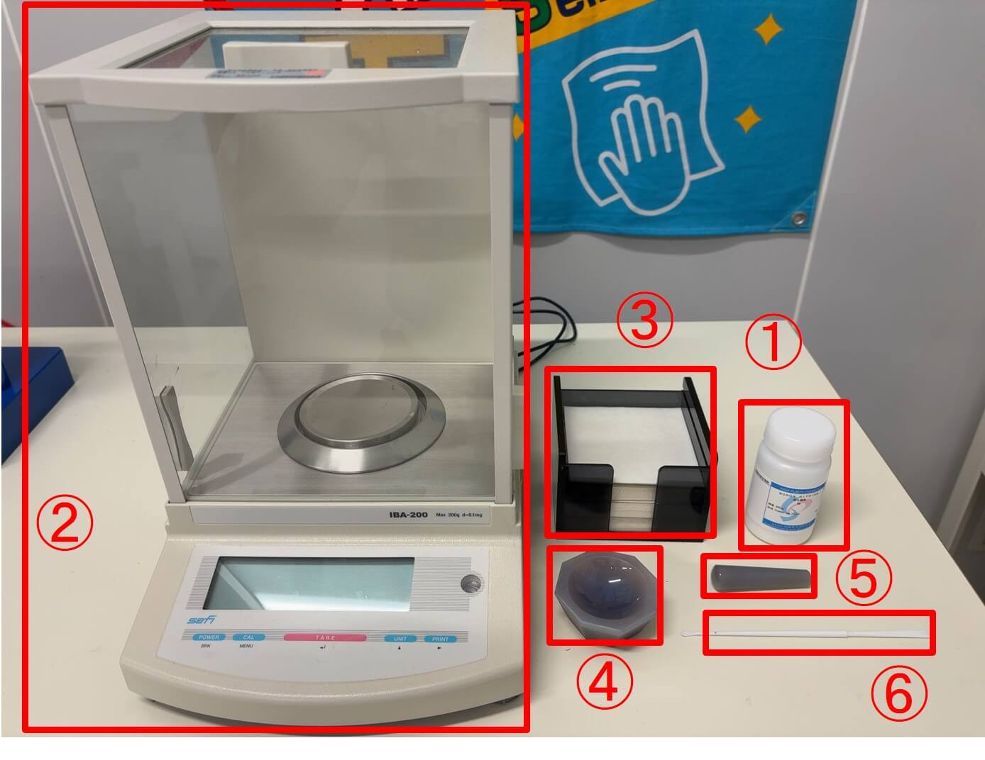 ④乳鉢 ⑤乳棒 ⑥スパチュラ